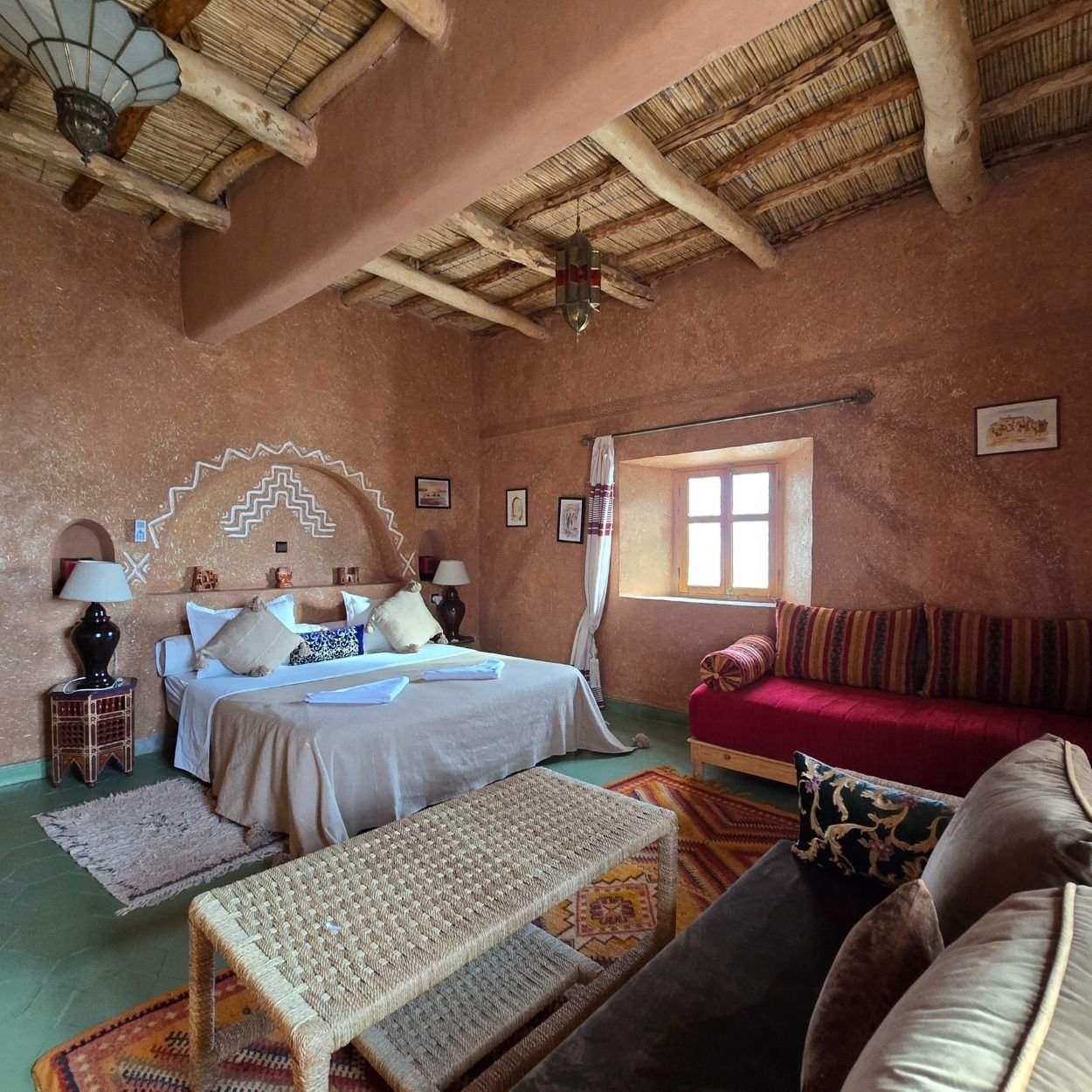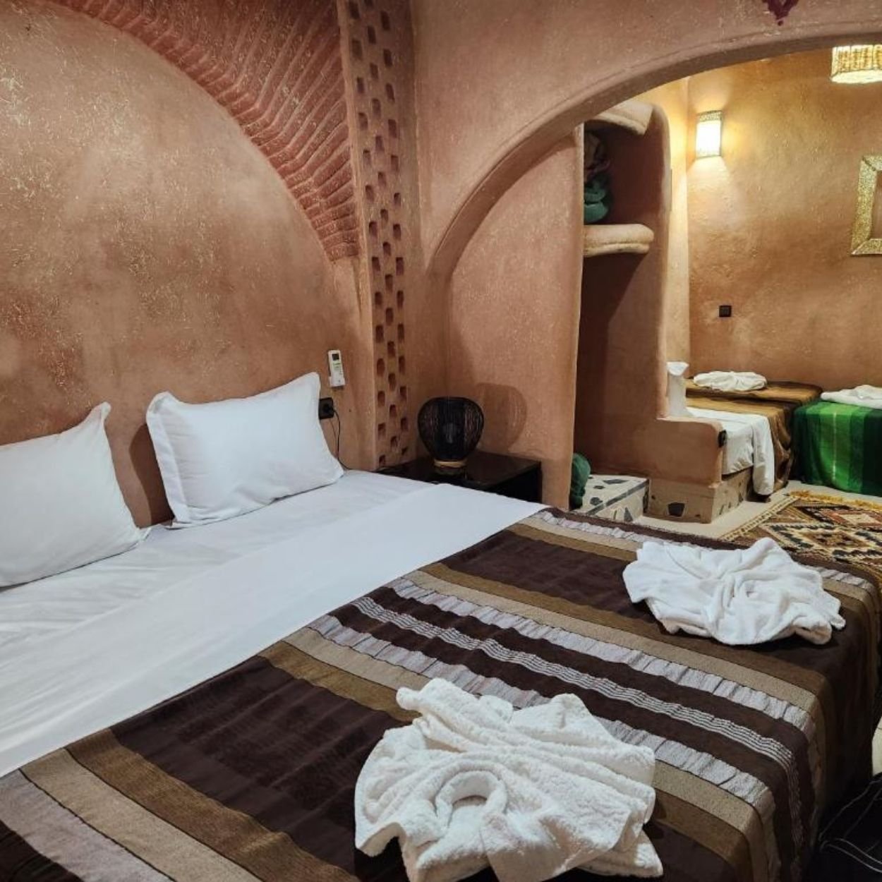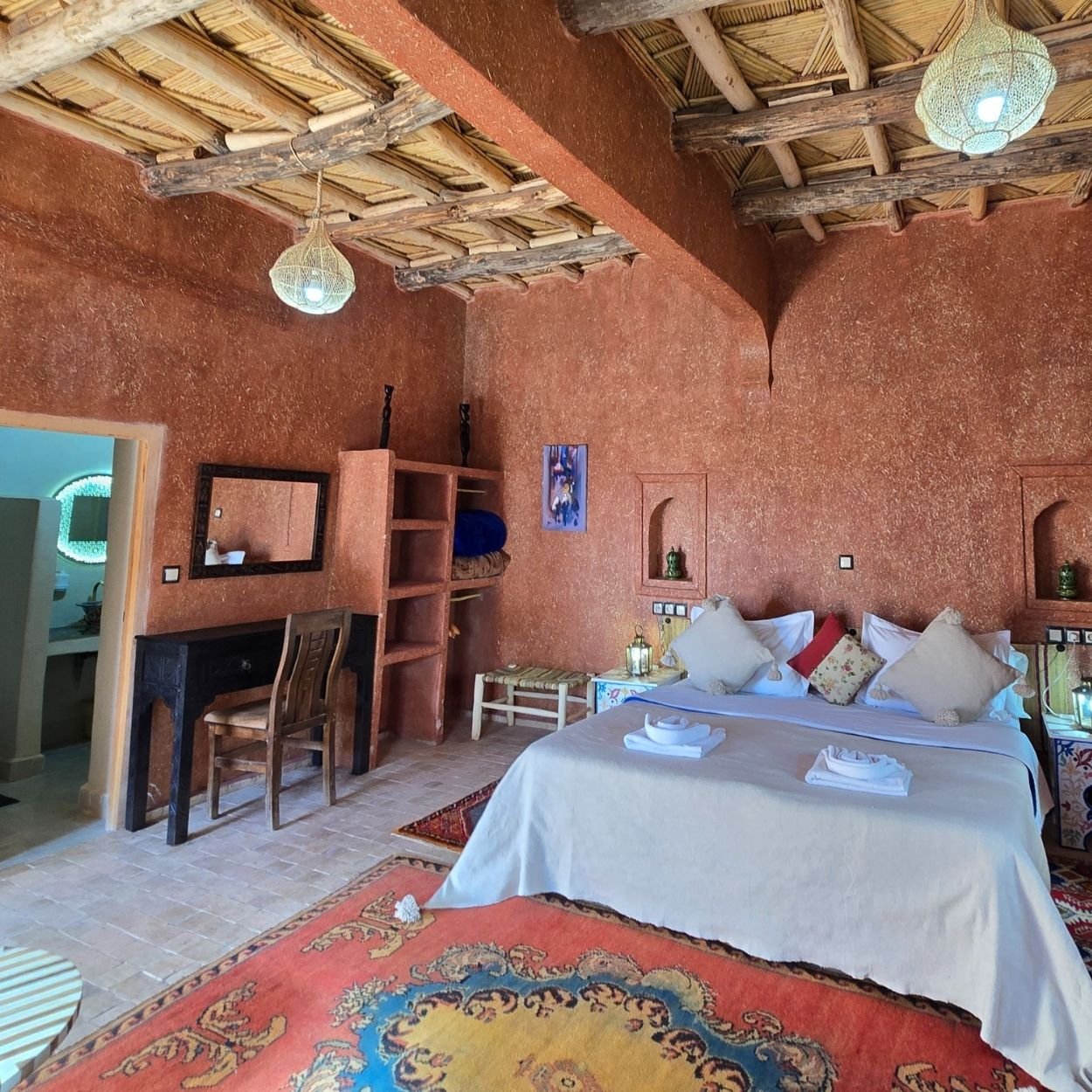We offer 12 unique rooms: doubles, suites, and one family room, all decorated in an authentic Berber style.