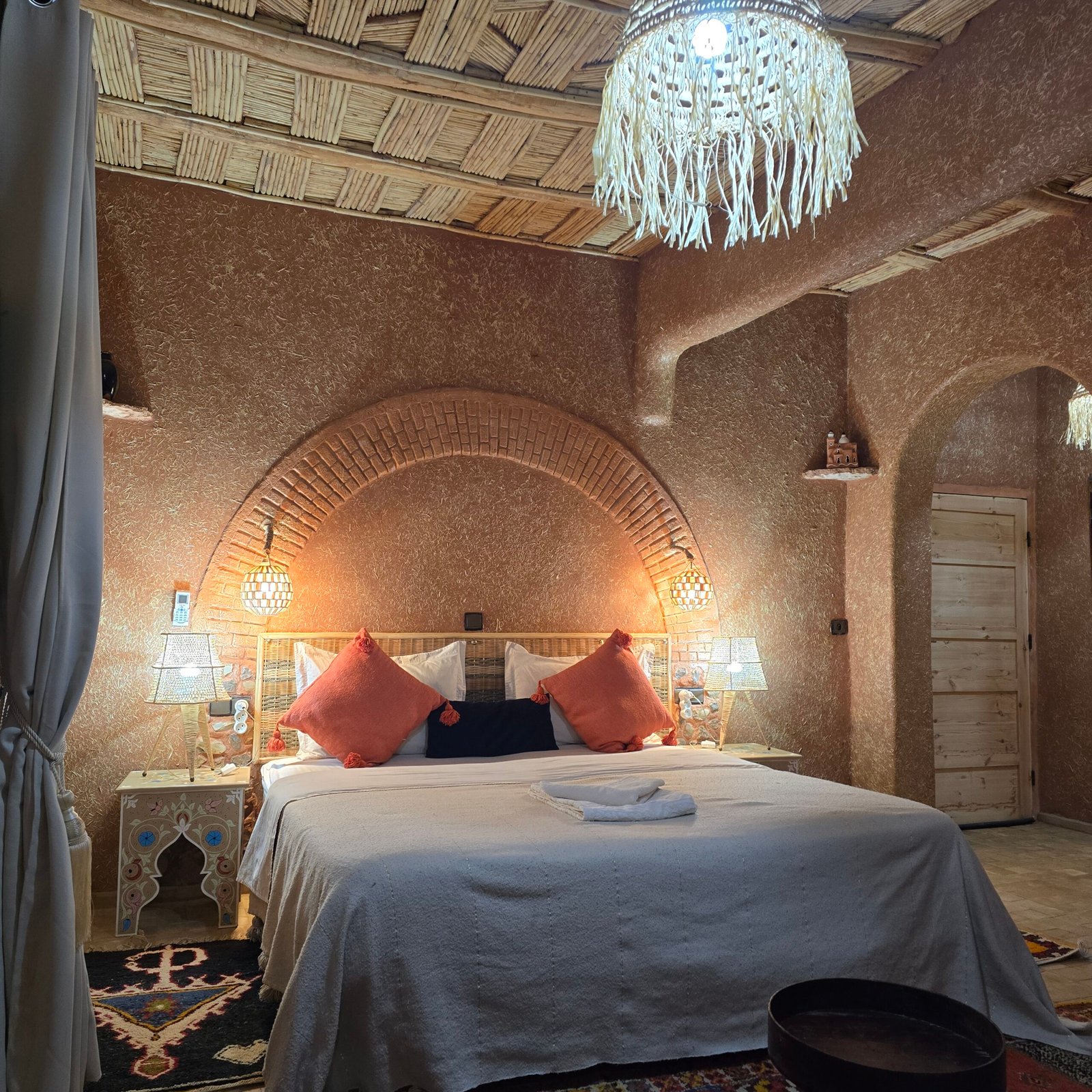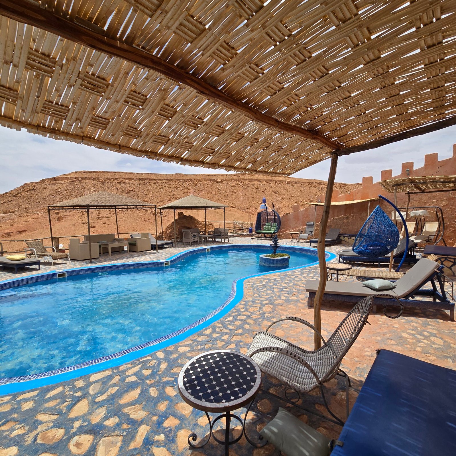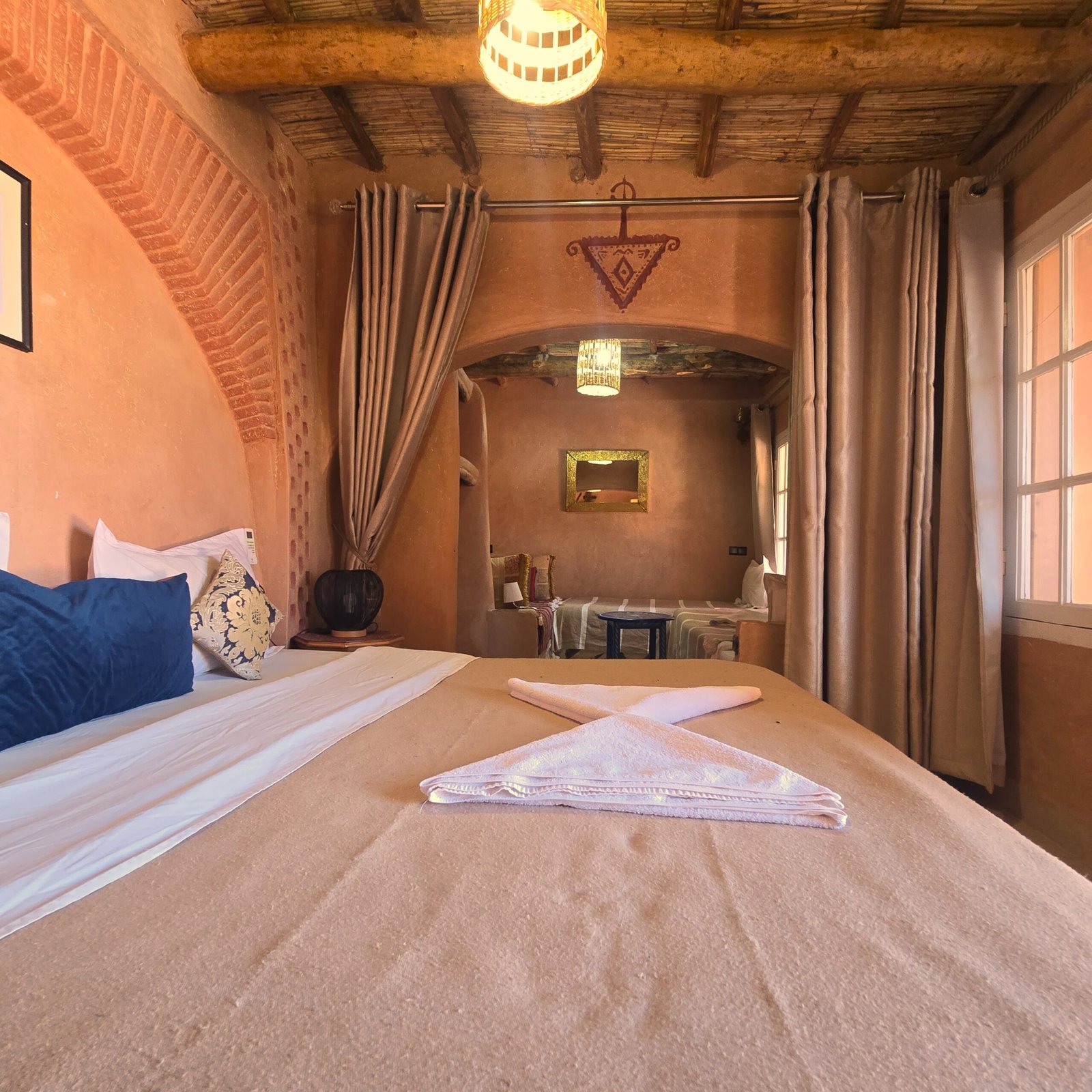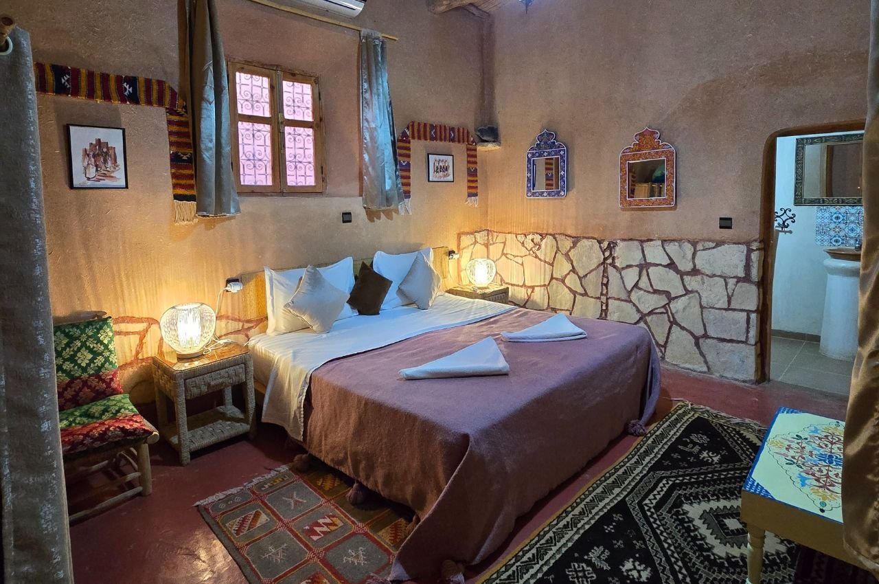 Avant de poser vos valises au Riad Paradise of Silence, découvrez la maison en images : chambres et suites d’inspiration berbère, espaces communs baignés de lumière, patio calme, piscine et vues sur la Kasbah d’Aït Ben Haddou. Chaque photo reflète l’ambiance du riad – tons naturels, matières authentiques, atmosphère chaleureuse – pour vous aider à vous projeter et à préparer sereinement votre séjour en couple, en famille ou entre amis.