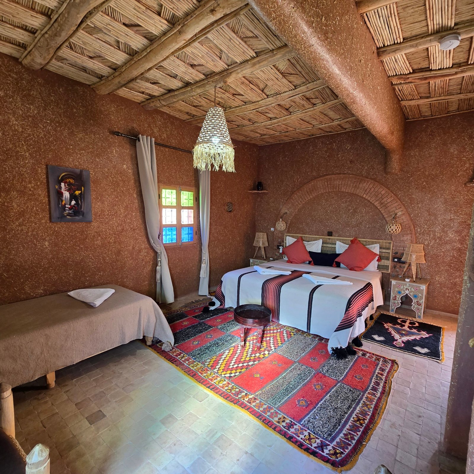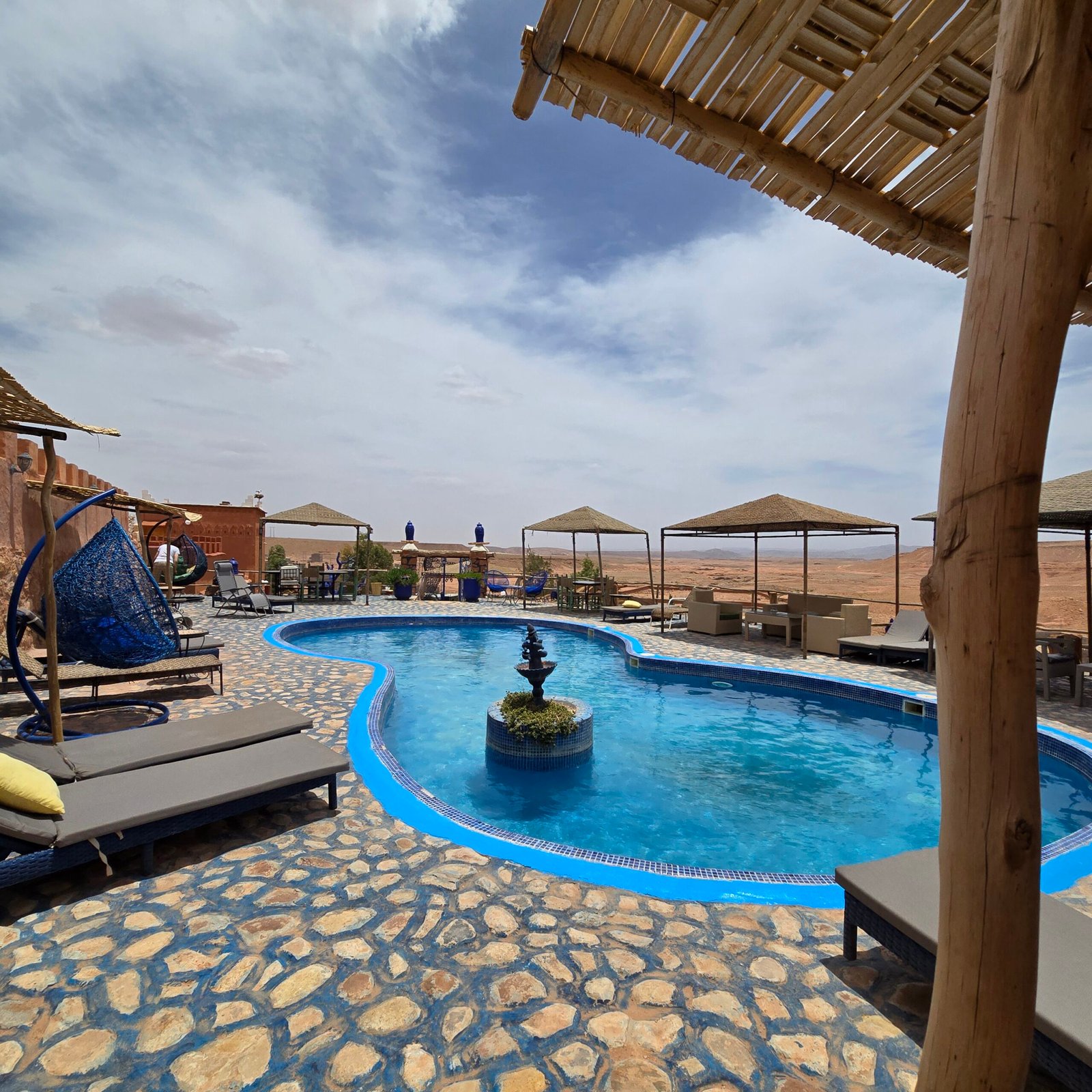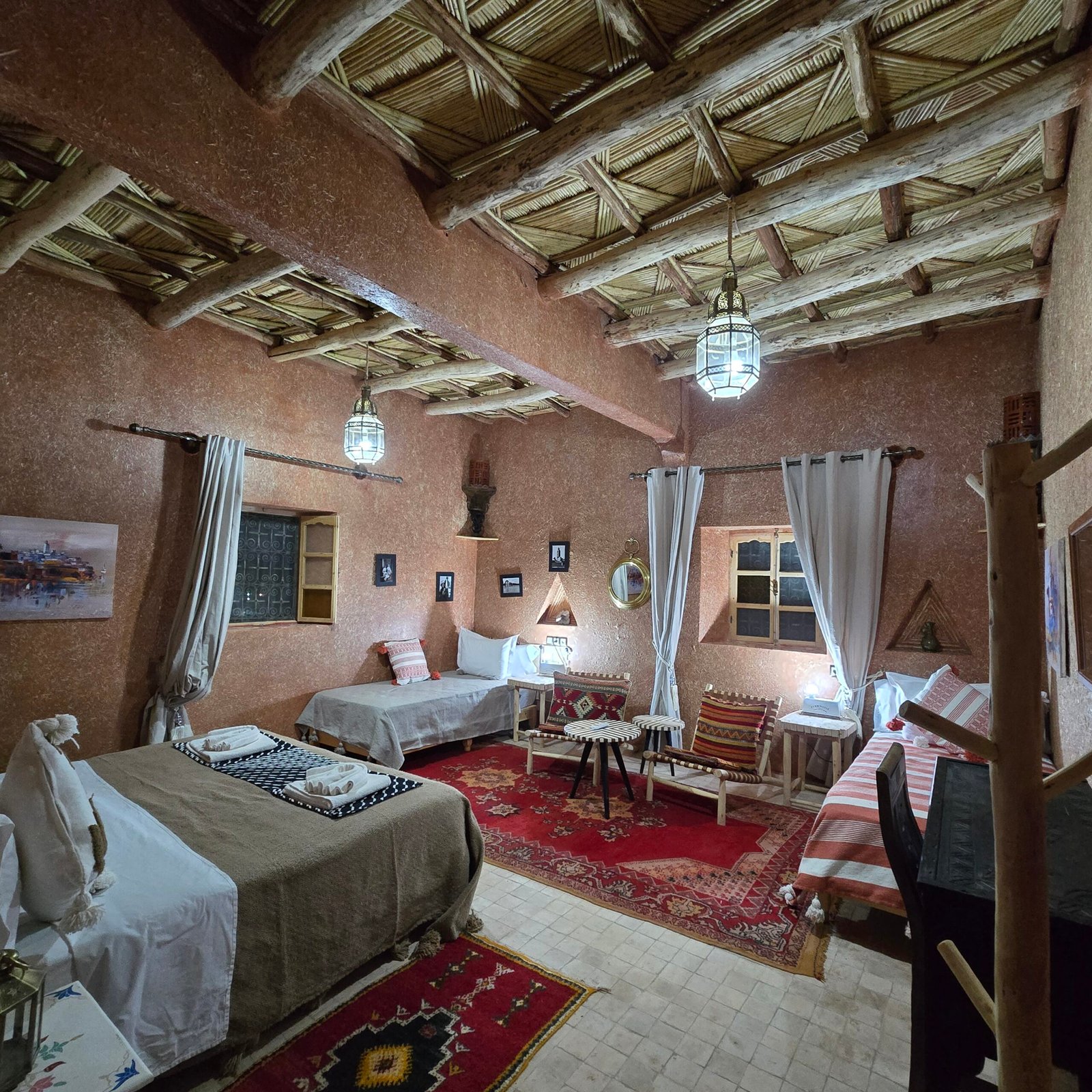 Avant de poser vos valises au Riad Paradise of Silence, découvrez la maison en images : chambres et suites d’inspiration berbère, espaces communs baignés de lumière, patio calme, piscine et vues sur la Kasbah d’Aït Ben Haddou. Chaque photo reflète l’ambiance du riad – tons naturels, matières authentiques, atmosphère chaleureuse – pour vous aider à vous projeter et à préparer sereinement votre séjour en couple, en famille ou entre amis.
